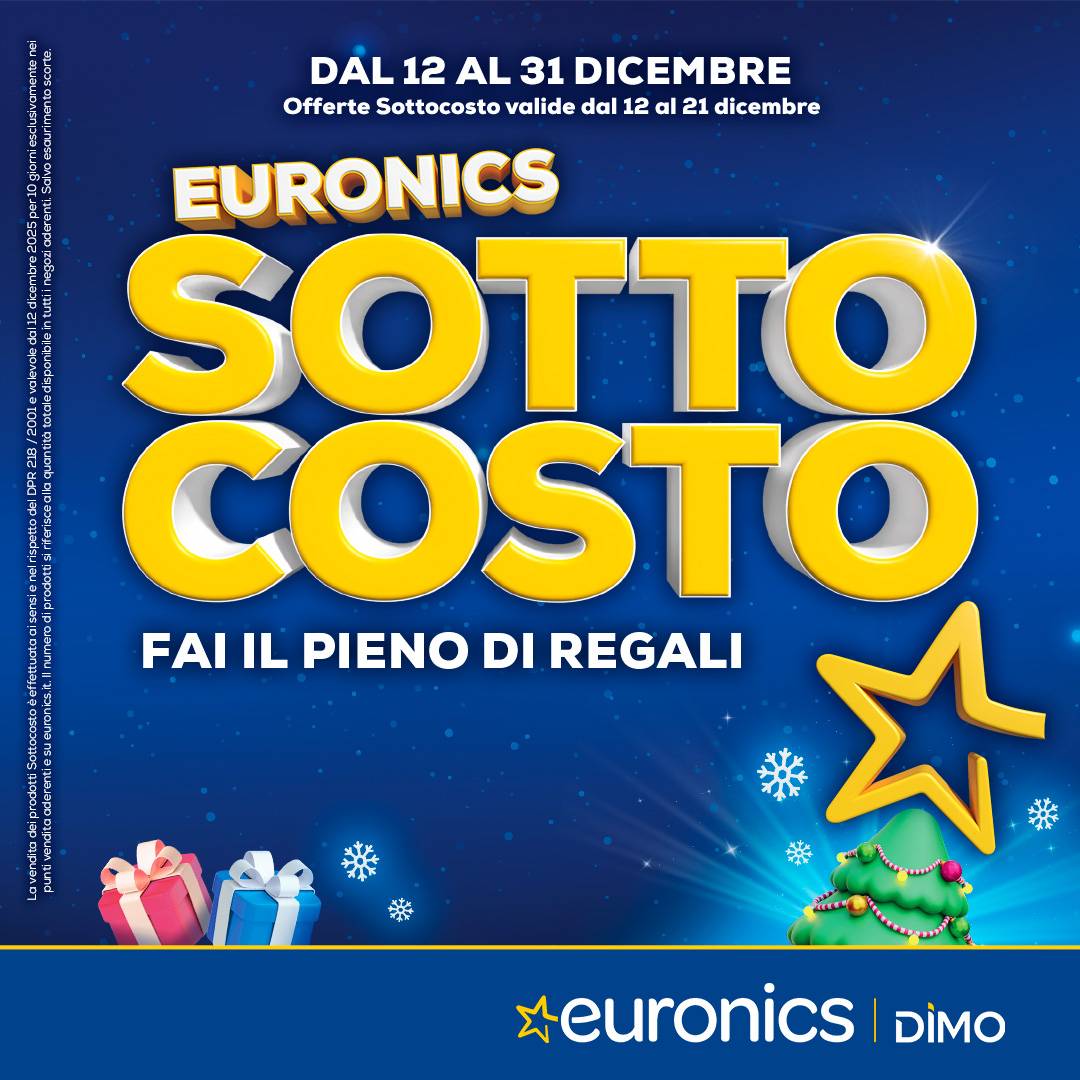 Da Euronics c’è l’occasione delle feste: il Sottocosto! Fino al 21 dicembre fai il pieno di regali, nei nostri negozi o su euronics.it